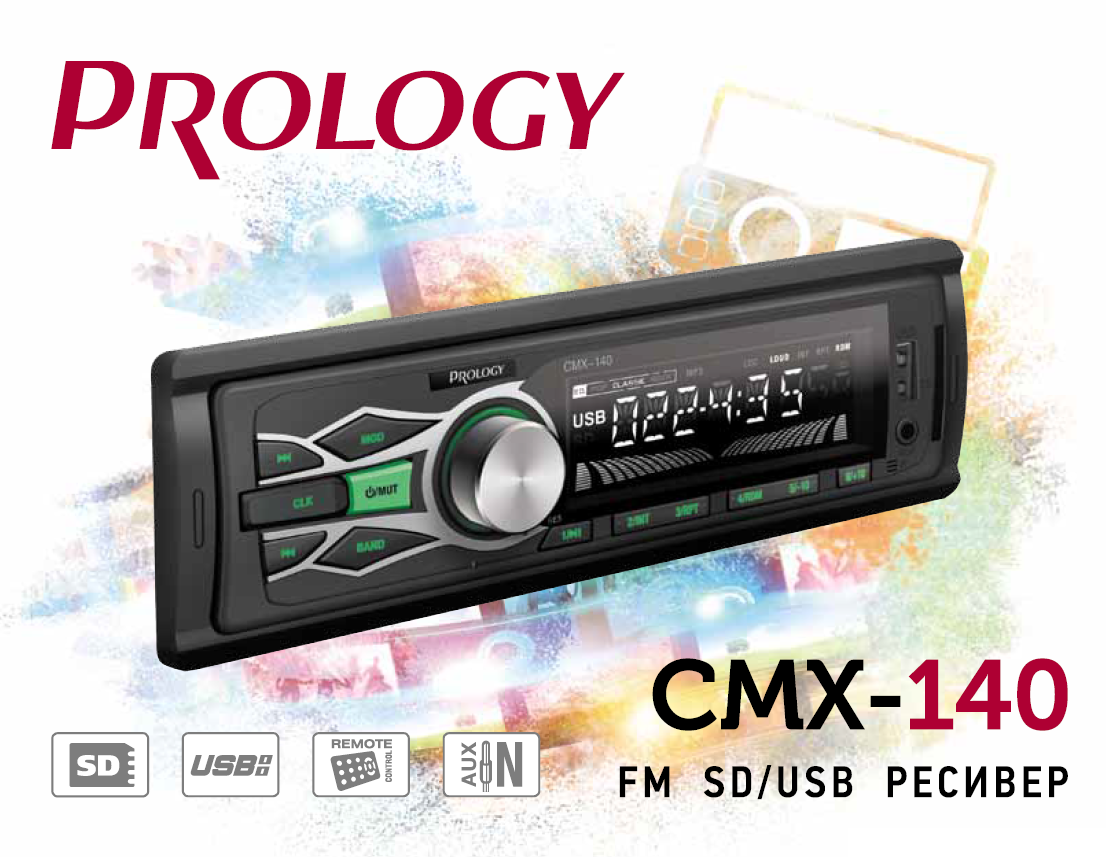 Благодаря своей практичности и надёжности FM SD/USB ресивер PROLOGY CMX-140 станет надёжным другом и будет скрашивать время, проведенное в дороге. Продуманное соотношение стоимости, качества и оптимального числа опций устройства вызовет у автовладельцев заслуженное признание.