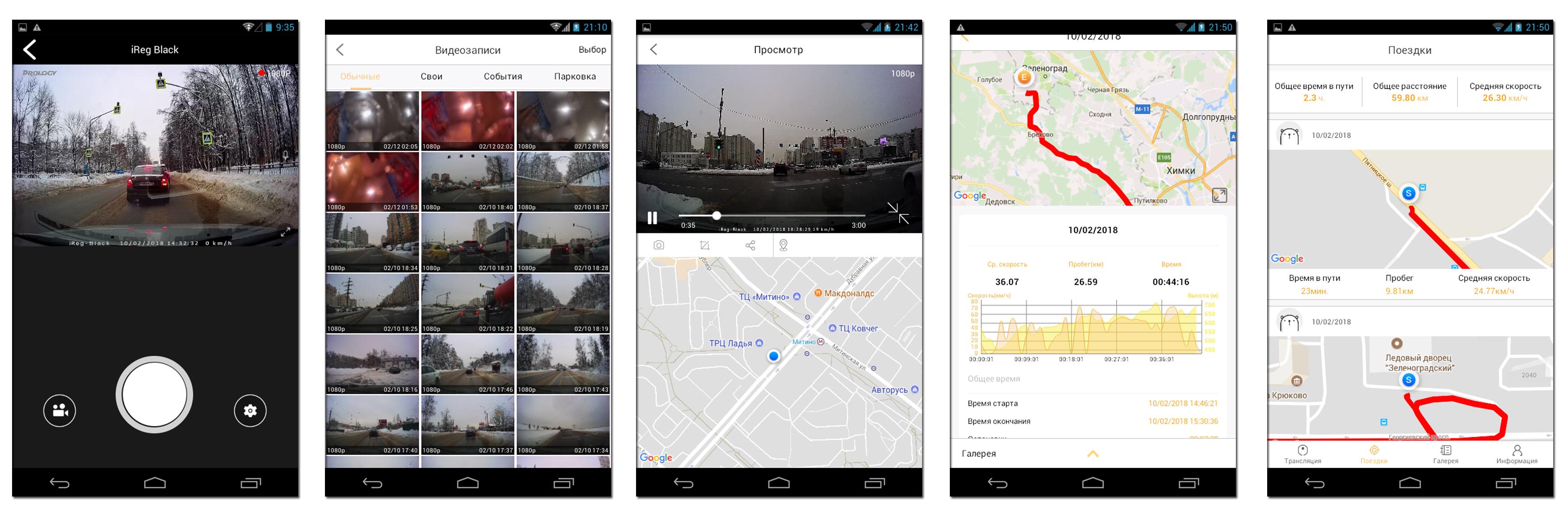 С помощью приложения можно просмотреть видеозаписи на телефоне или планшете, а так же изменить разрешение видео, включить режим парковки, задать чувствительность датчика ускорения и установить значения многих других функций.