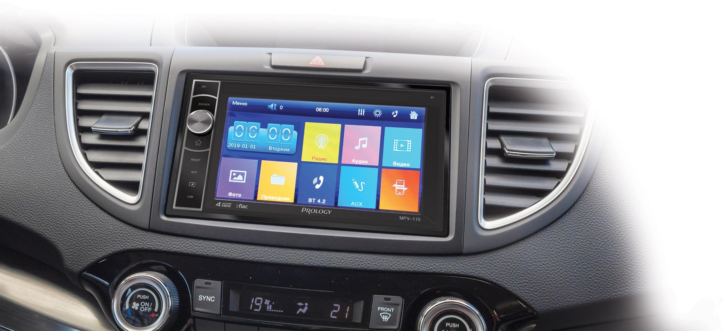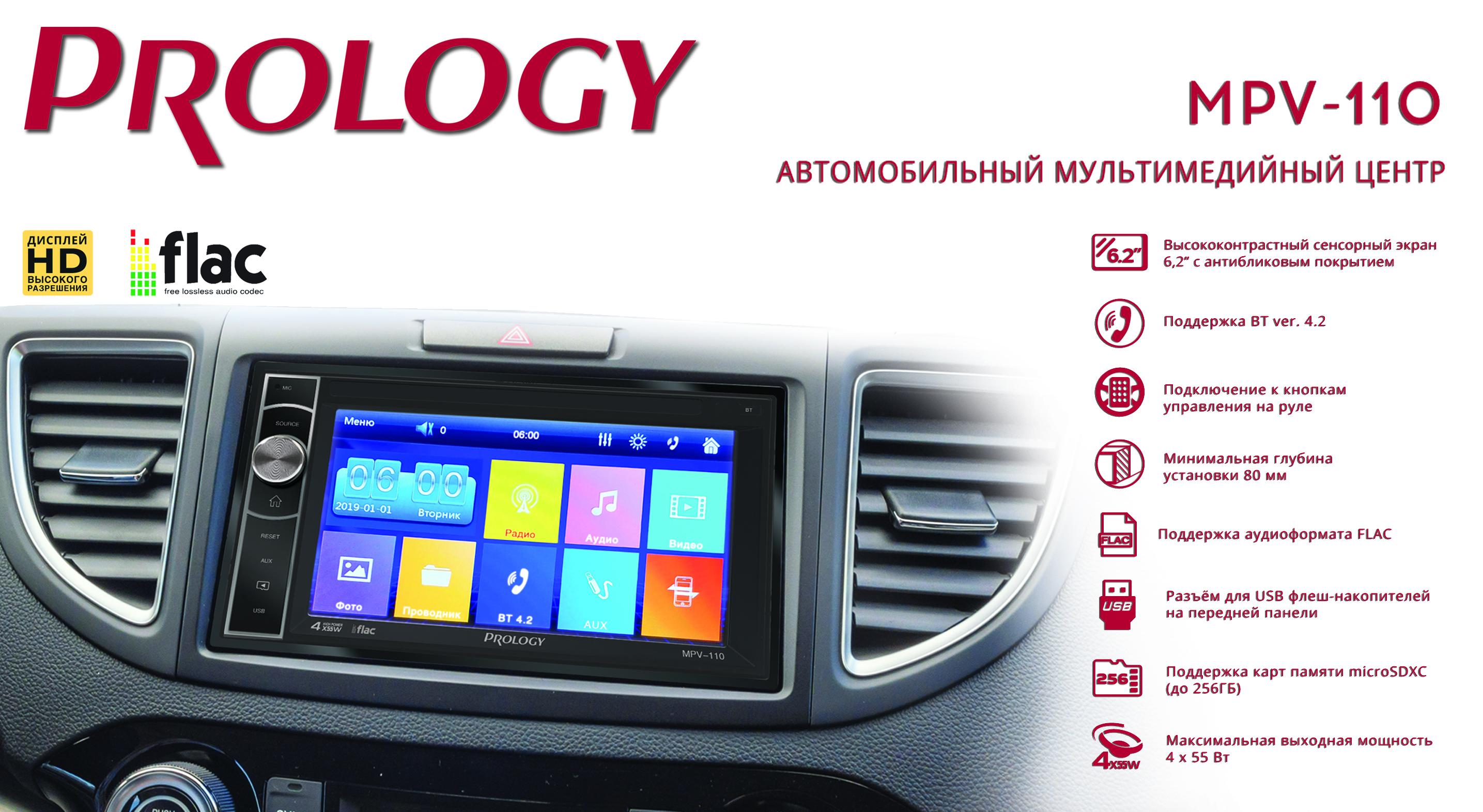 Промо страница автомобильного мультимедийного центра PROLOGY MPV-110