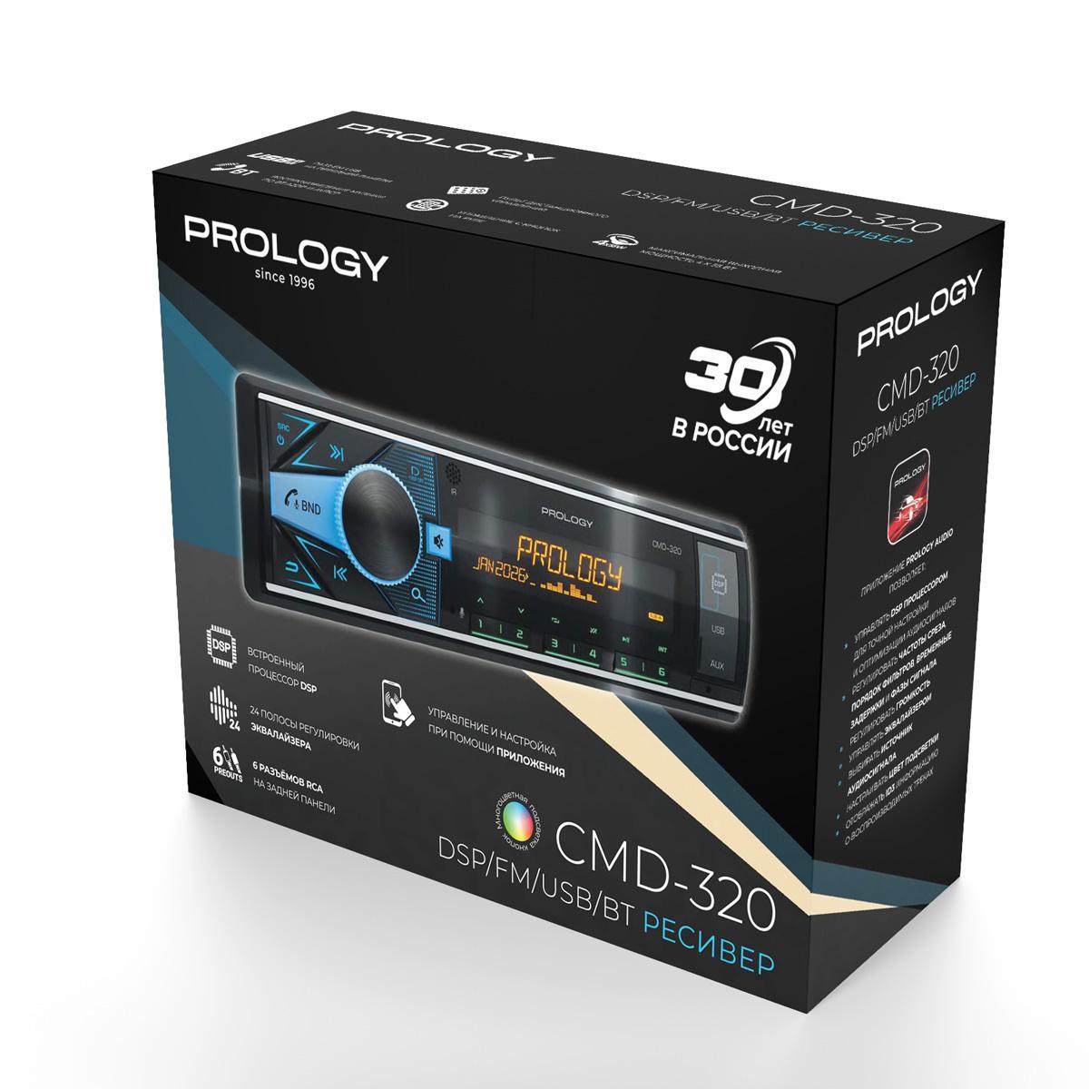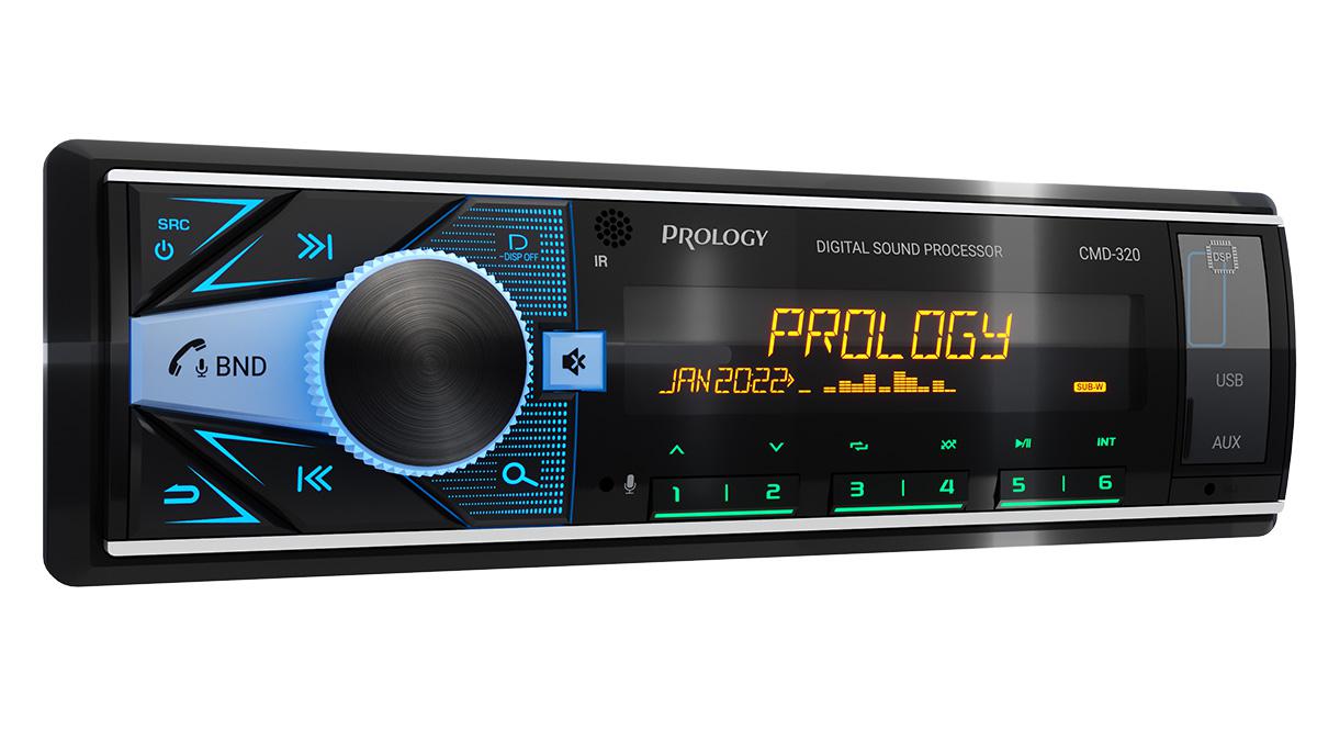 PROLOGY CMD-320 — FM / USB ресивер с Bluetooth® и встроенным DSP - аудиопроцессором, стандартного размера 1DIN, который обеспечивает прием радиостанций в диапазоне FM / УКВ / AM и воспроизведение аудиофайлов MP3, WAV, и FLAC форматов, записанных на USB накопители, передачу звука с внешних источников через линейный аудиовход и беспроводной интерфейс Bluetooth®. Поддерживается управление мобильным телефоном через интерфейс Bluetooth® (ver. 4,2).
