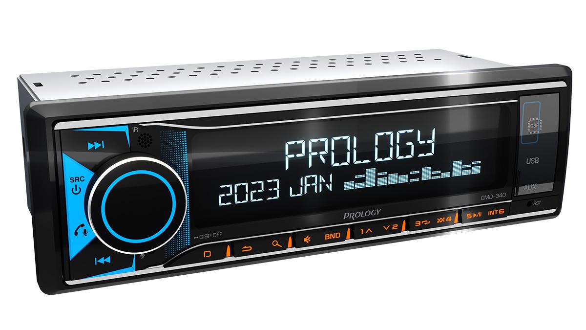 PROLOGY CMD-340 — FM / USB ресивер с Bluetooth® и встроенным DSP - аудиопроцессором, стандартного размера 1DIN, который обеспечивает прием радиостанций в диапазонах FM / УКВ / AM и воспроизведение медиафайлов MP3, WAV, и FLAC форматов, записанных на USB накопители, передачу звука с внешних источников через линейный аудиовход и беспроводной интерфейс Bluetooth®. Поддерживается управление мобильным телефоном через интерфейс Bluetooth® (ver. 4,2).