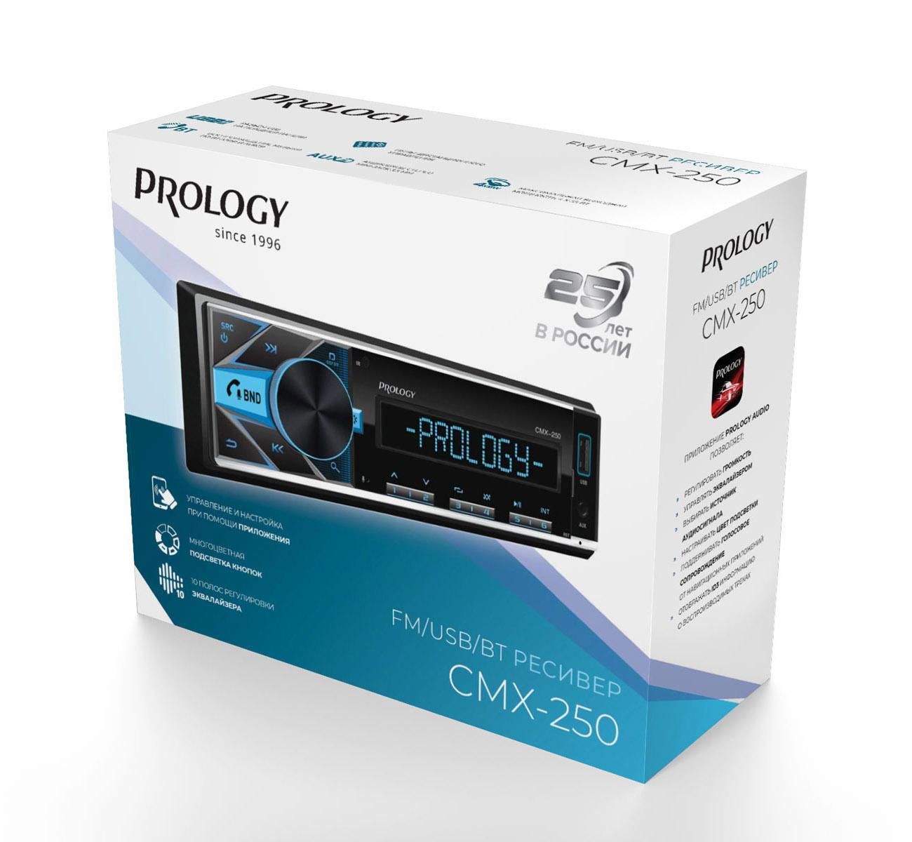 PROLOGY CMX-250 — FM / USB ресивер с Bluetooth®, стандартного размера 1DIN, который обеспечивает прием радиостанций в диапазоне FM и воспроизведение медиафайлов MP3, WAV, и FLAC форматов, записанных на USB накопители, передачу звука с внешних источников через линейный аудиовход и беспроводной интерфейс Bluetooth®. Поддерживается управление мобильным телефоном через интерфейс Bluetooth® (ver. 4,2).