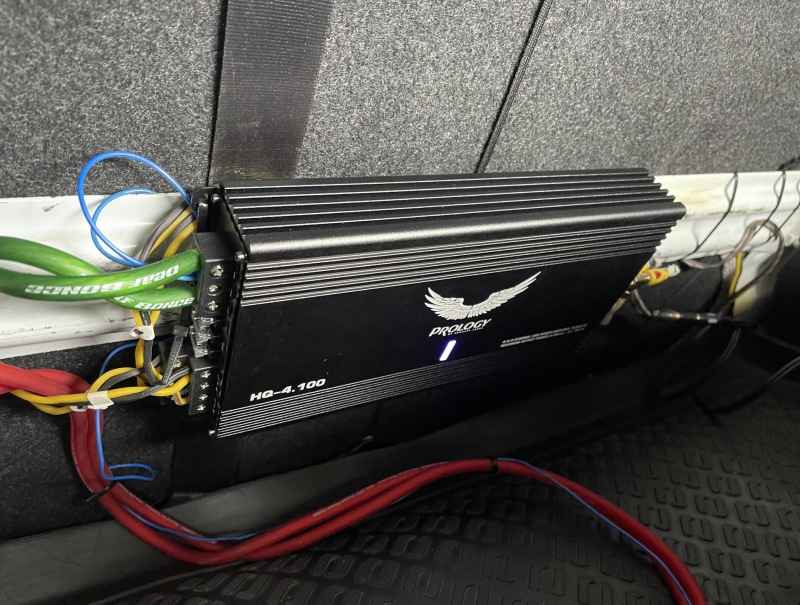 PROLOGY HQ-4.100 – 4/3/2-канальный усилитель мощности AB-класса. Мощность RMS (4/2 Ом): 4 x 100/170 Вт, мостовой режим (4 Ом): 2 х 350 Вт.