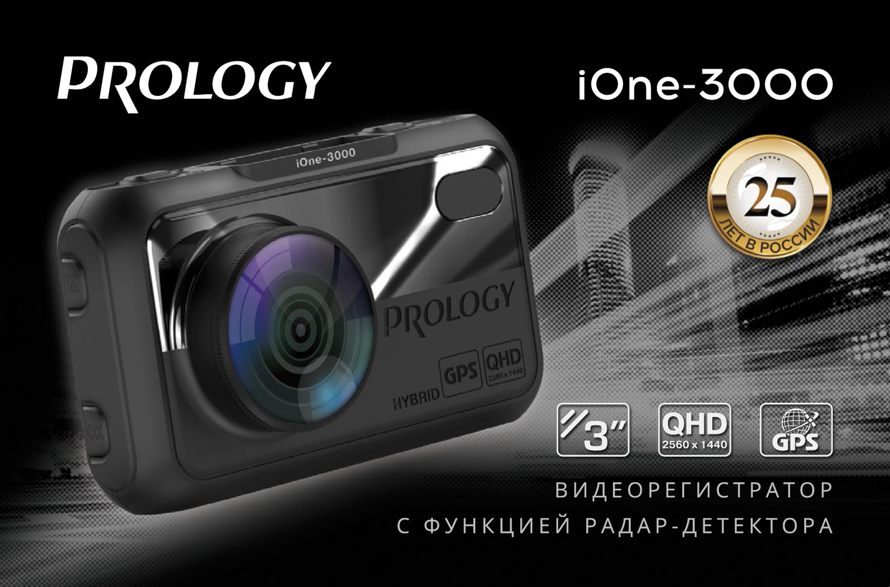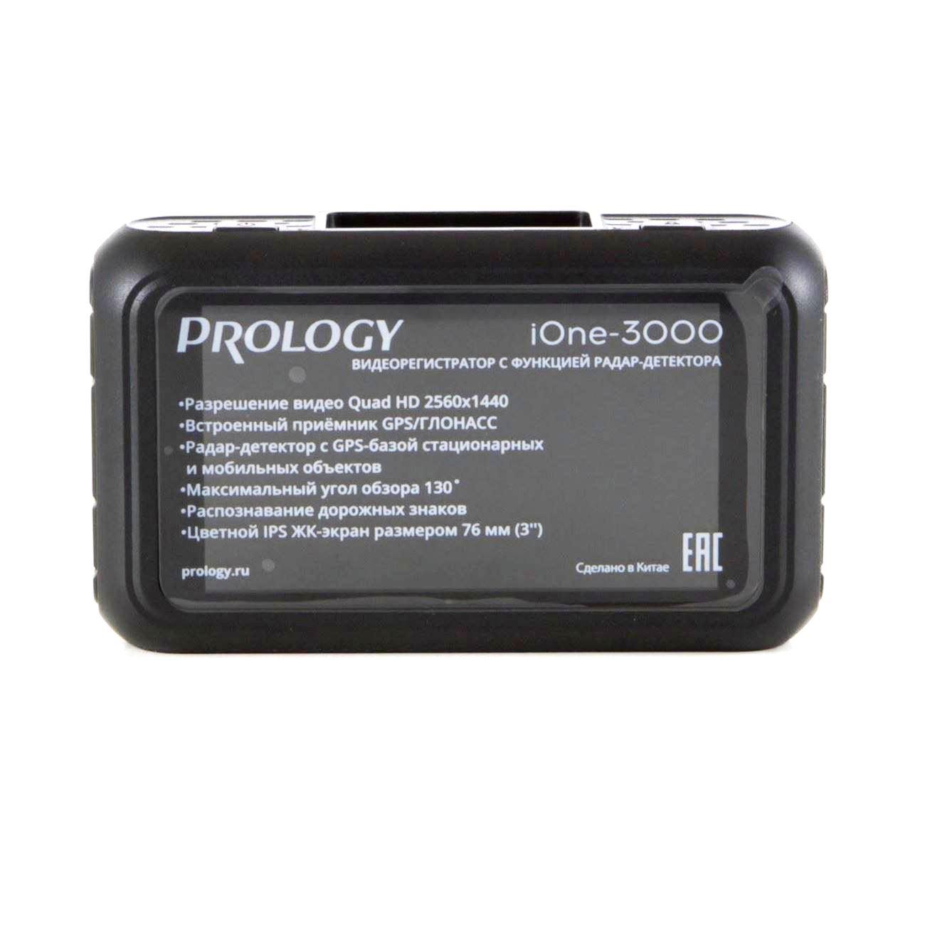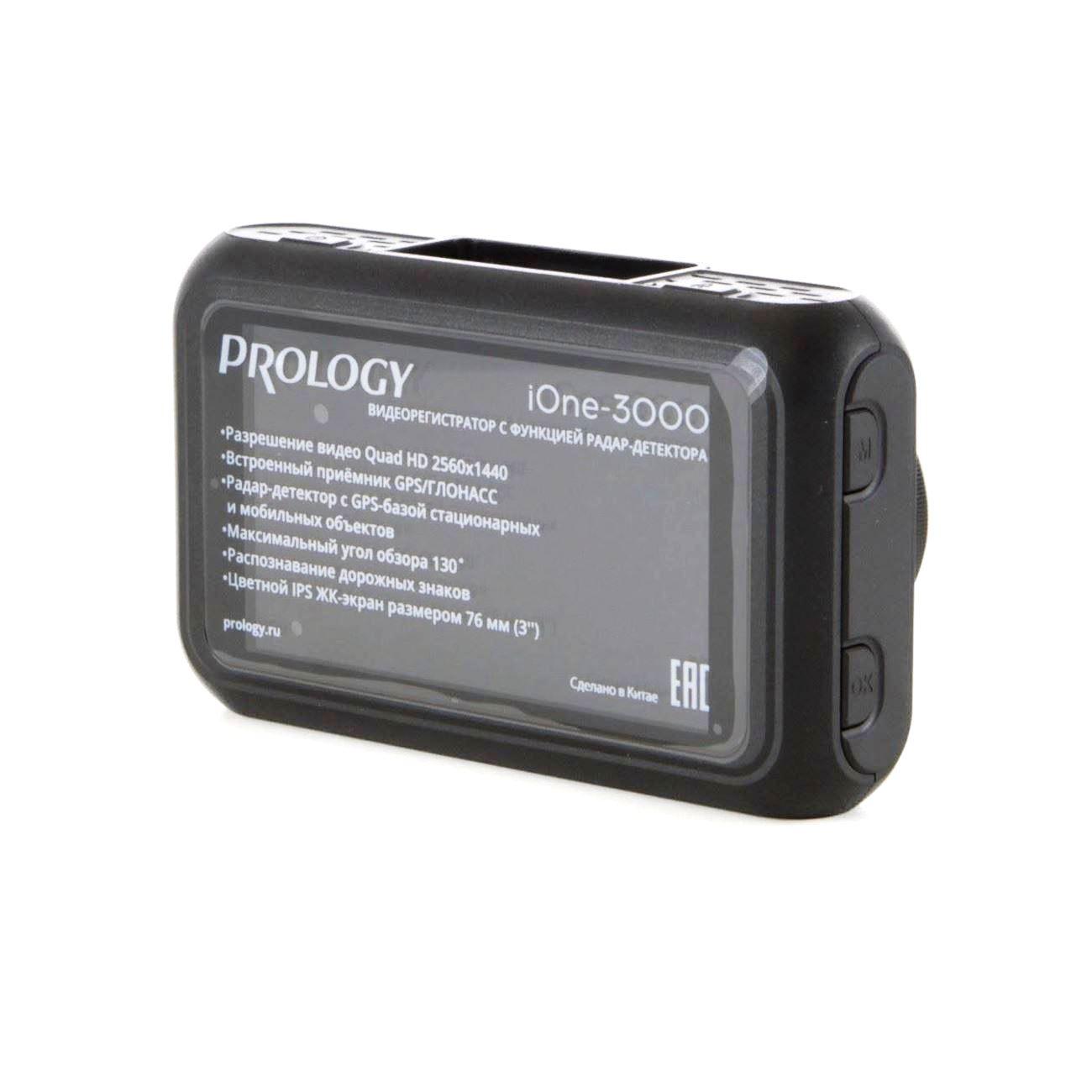 Видеорегистратор и с радар-детектором (антирадаром) PROLOGY iOne-3000 предназначен для записи на карту памяти microSD звука и видеоизображения дорожной ситуации из автомобиля, а также для оповещения водителя о том, что автомобиль находится в поле действия лазер-радарных измерителей скорости движения, радарных комплексов «Стрелка» и радаров, излучающих радиоволны в диапазонах X и K. Кроме того, устройство способно оповещать о приближении к стационарным радарам, камерам наблюдения и другим объектам видеофиксации с помощью спутниковых систем GPS и ГЛОНАСС. Устройство легко и удобно крепится на лобовом стекле при помощи магнитного держателя.