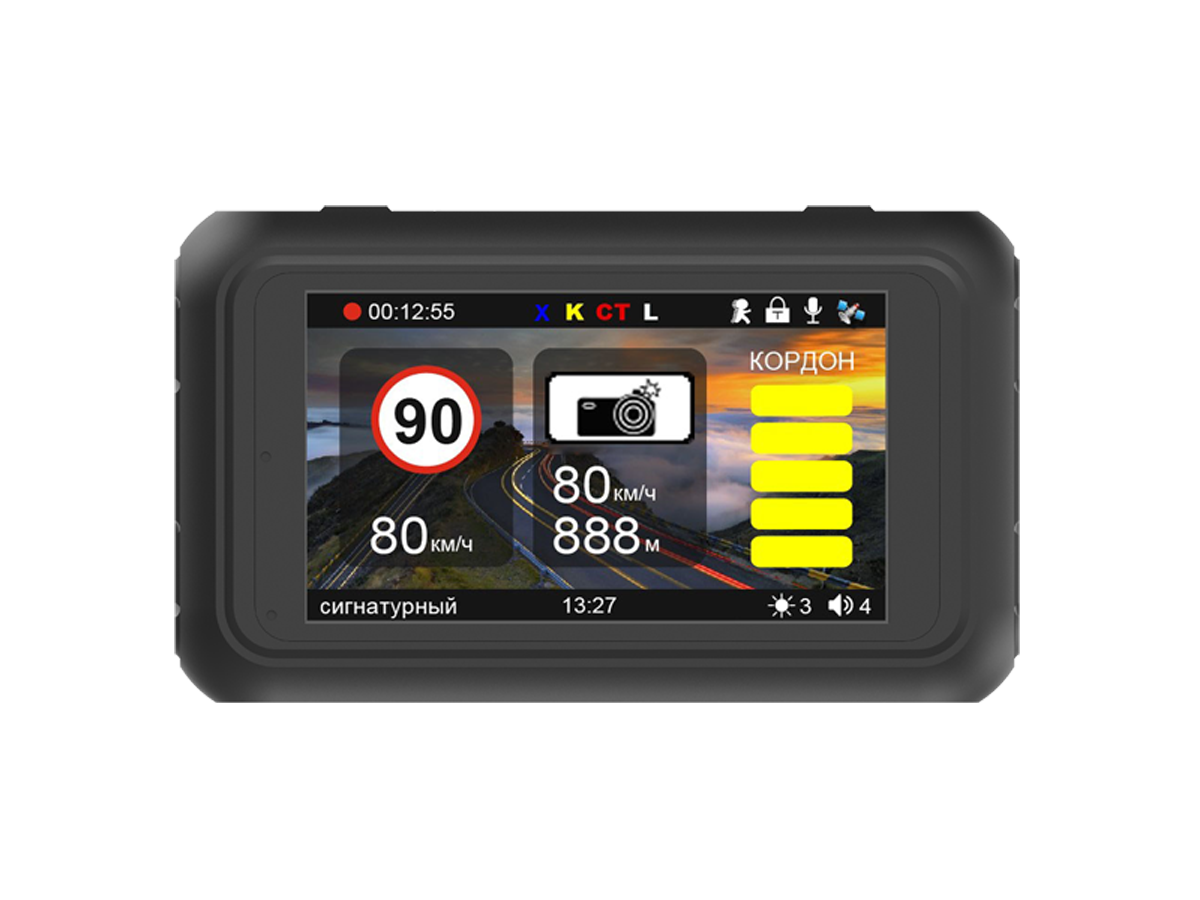 Встроенный Радар-детектор(антирадар), работающий с сигнатурной технологией и инновационной системой фильтрации помех: |