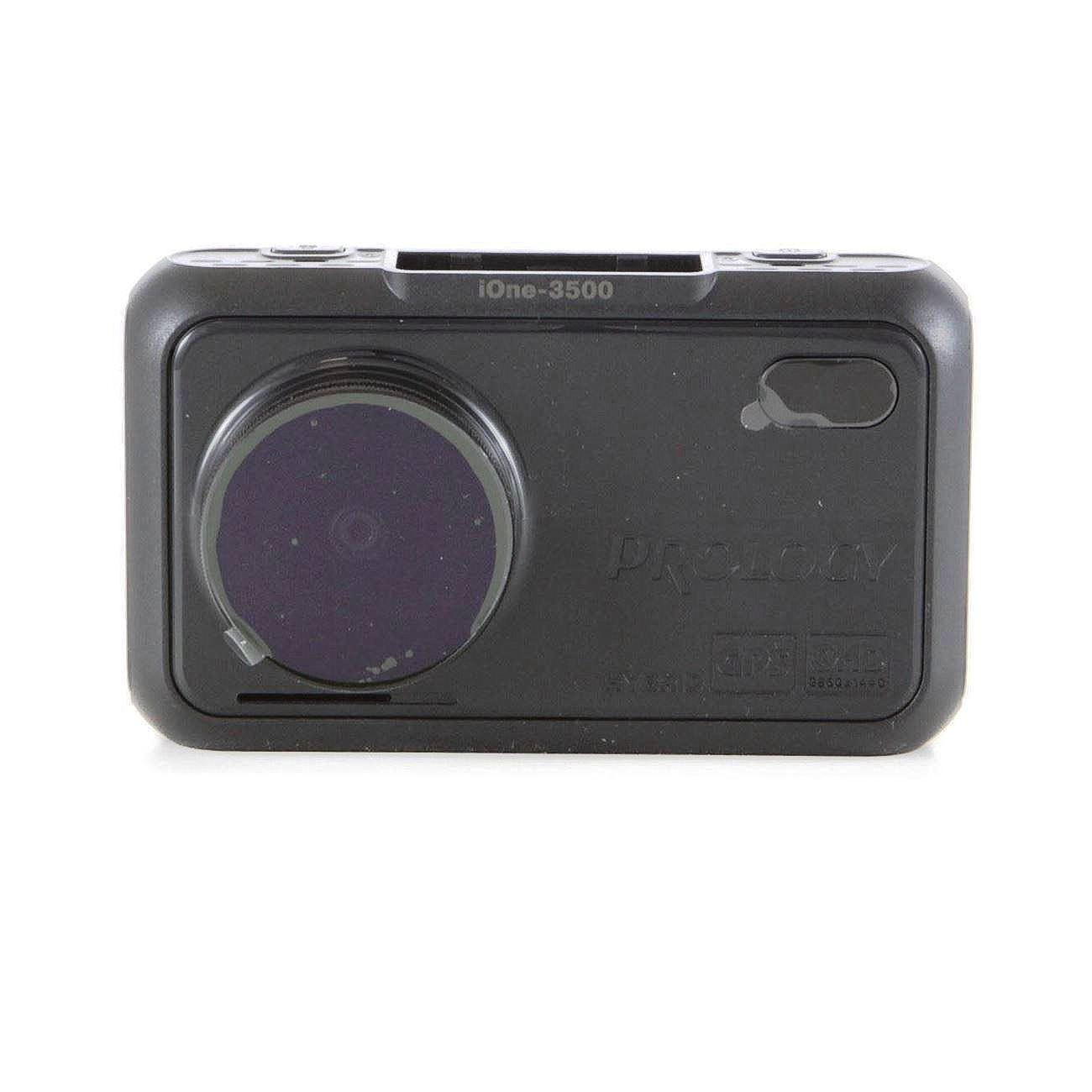 Видеорегистратор c радар-детектором (антирадаром) PROLOGY iOne-3500 предназначен для записи на карту памяти microSD звука и видеоизображения дорожной ситуации из автомобиля, а также для оповещения водителя о том, что автомобиль находится в поле действия лазер-радарных измерителей скорости движения, радарных комплексов «Стрелка» и радаров, излучающих радиоволны в диапазонах X, K, ST и Laser. Встроенный радар-детектор поддерживает режимы детектирования: Сигнатурный → Авто → Трасса → Город. Кроме того, устройство способно оповещать о приближении к стационарным радарам, камерам наблюдения и другим объектам видеофиксации с помощью систем GPS и GLONASS. Устройство легко и удобно крепится на лобовом стекле при помощи магнитного держателя.
