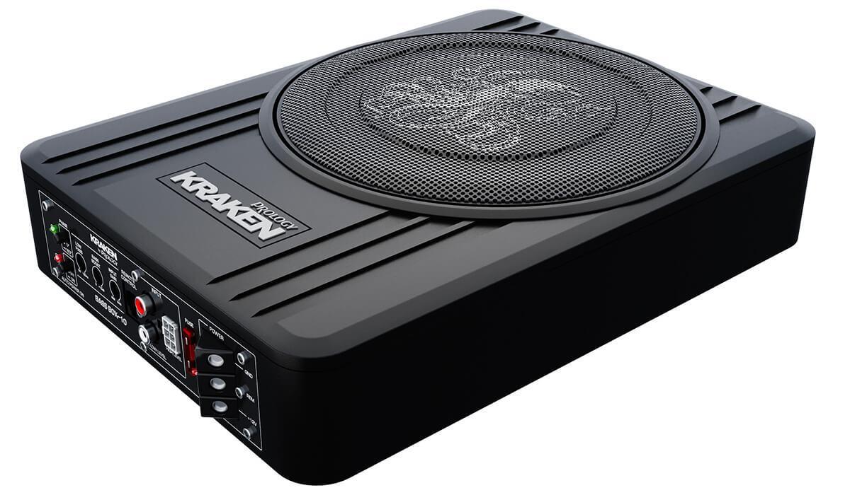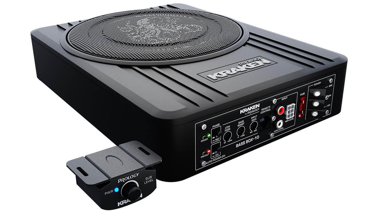 PROLOGY KRAKEN BASS BOX-10 — активный сабвуфер с низкопрофильным компактным корпусом «закрытый ящик» из алюминиевого сплава. Высота корпуса 80 мм и эргономичный дизайн позволяют легко установить сабвуфер в любом месте салона автомобиля. Он идеально подходит для установки под сиденьем. Сабвуфер совместим с любыми автомагнитолами, благодаря возможности подключения двумя способами: с помощью линейных RCA или высокоуровневого входа.
