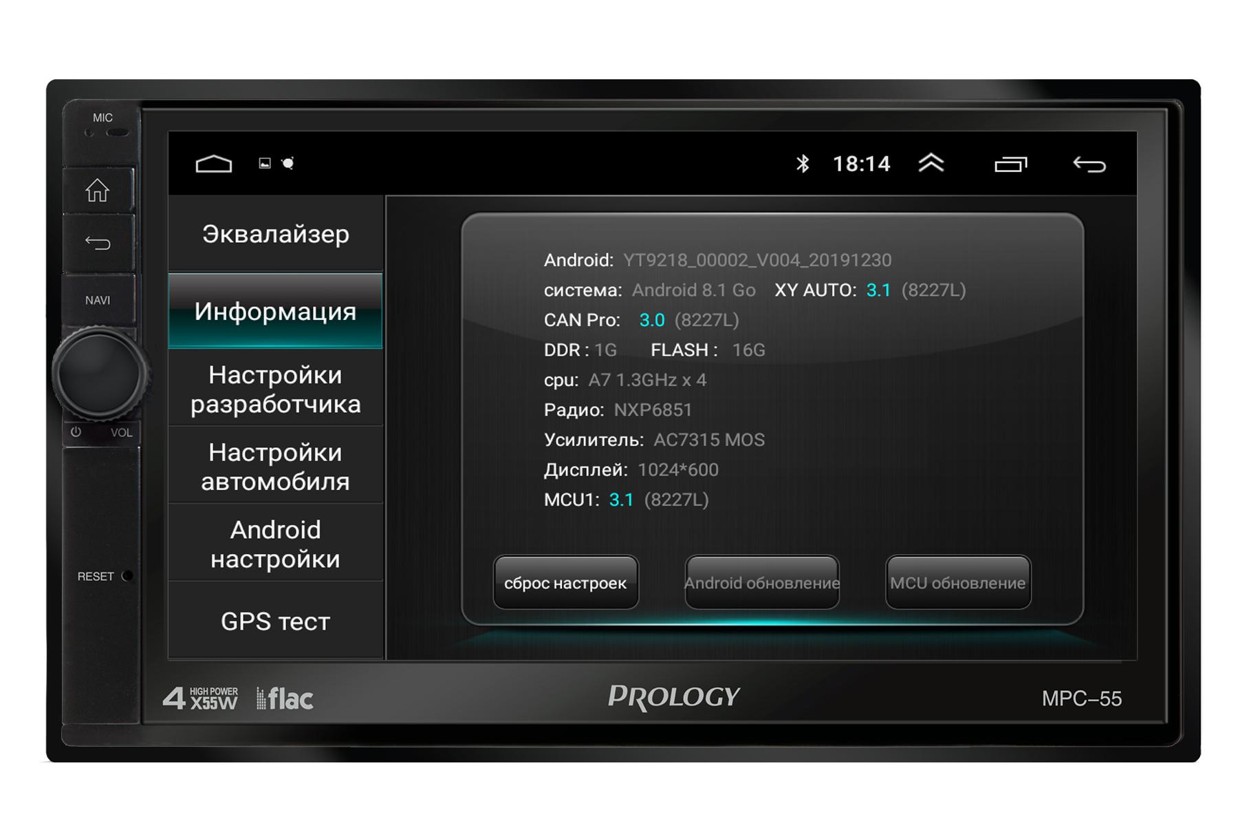 ТЕХНИЧЕСКИЕ ХАРАКТЕРИСТИКИ PROLOGY MPC-55 Android: