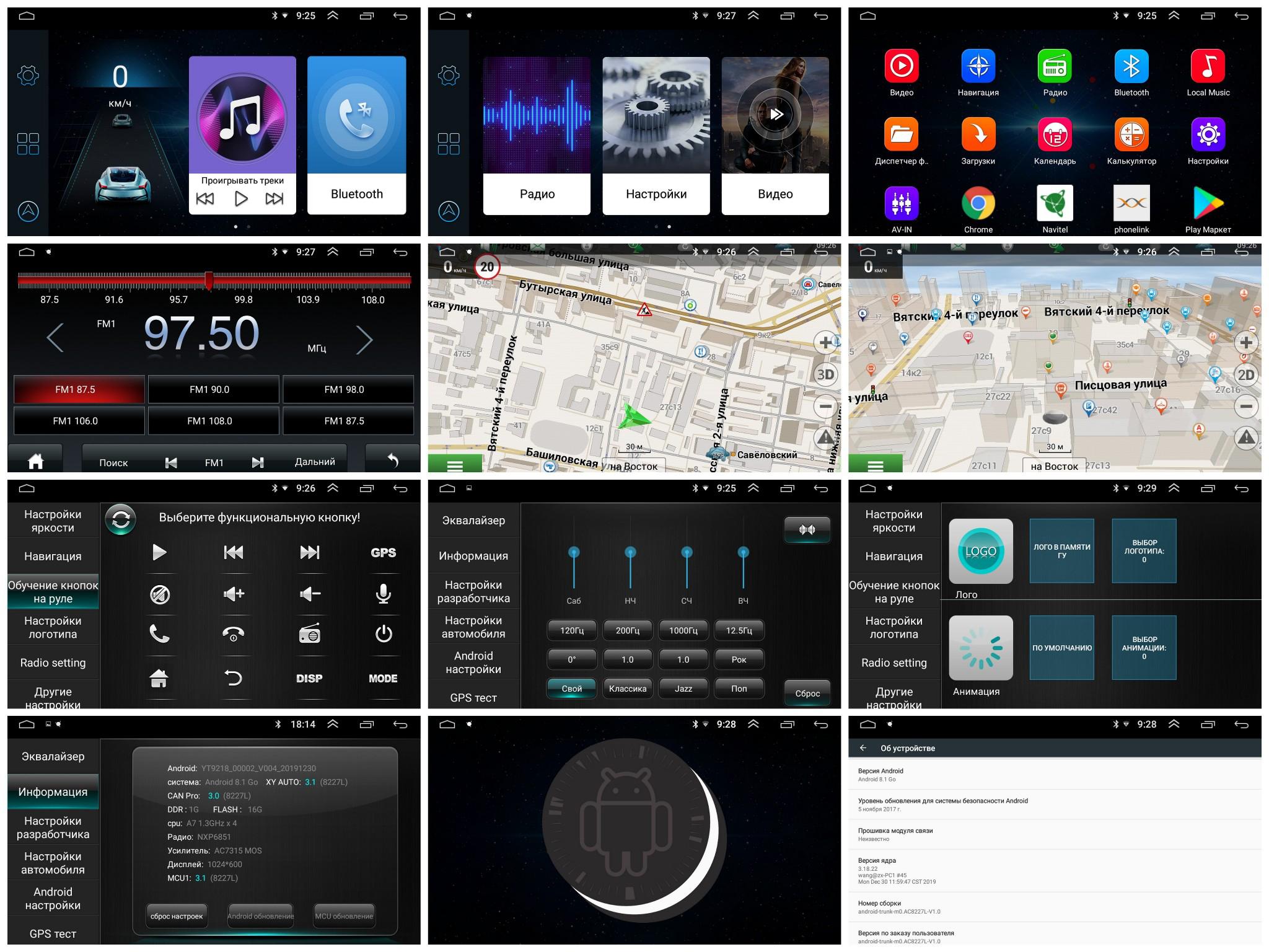 Красивое графическое меню на экране 6,9 дюймов с HD разрешением 1024x600 pix, красочный многостраничный интерфейс управления с большим выбором функций и Android приложений. Качественное, мощное звучание 4x55 Вт и возможности ручных и фиксированных персональных аудио настроек эквалайзера. Белая подсветка клавиш, два USB шлейфа с возможность зарядки подключенных устройств, Bluetooth® коннект с телефонами для громкой связи, набора номера и трансляции музыки. Wi-Fi подключение к интернету для использования онлайн-сервисов и приложений. Поддержка 3G/4G GSM модемов. Скачивание и установка Android приложений из официального магазина Google Play Market®. Голосовые команды, управление касанием экрана и кнопками на руле. Минимальная монтажная глубина 60 мм.
