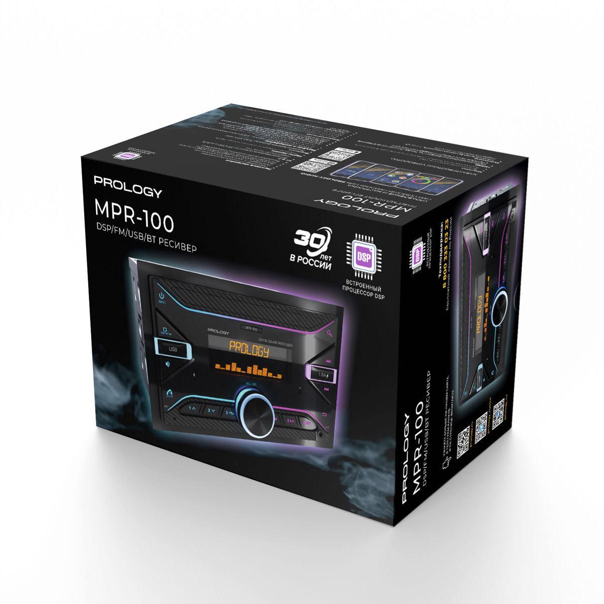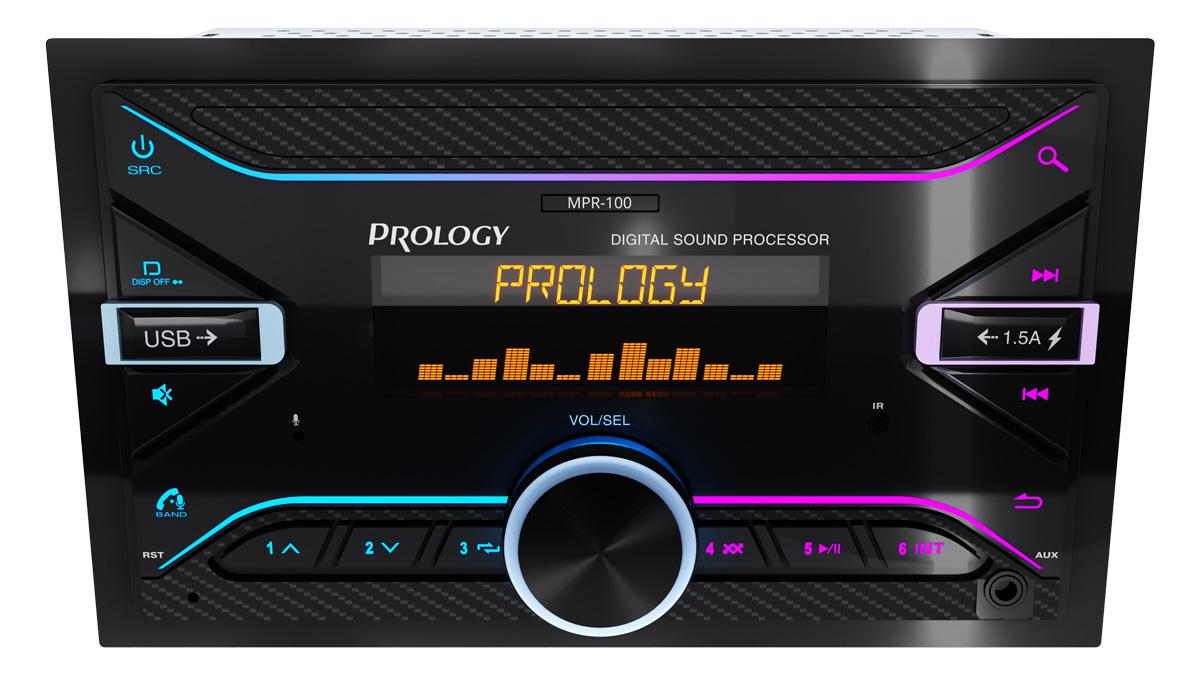 PROLOGY MPR-100 — FM / USB ресивер с Bluetooth и встроенным DSP - аудиопроцессором, стандартного размера 2DIN, который обеспечивает прием радиостанций в диапазоне FM / УКВ / AM и воспроизведение медиафайлов MP3, WAV, и FLAC форматов, записанных на USB накопители, передачу звука с внешних источников через линейный аудиовход и беспроводной интерфейс Bluetooth. Поддерживается управление мобильным телефоном через интерфейс Bluetooth (ver. 4,2).