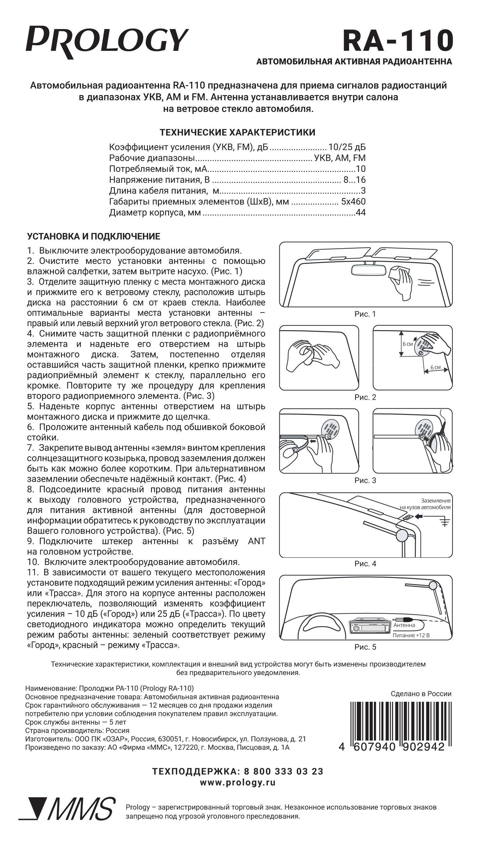 Автомобильная радиоантенна Prology RA-110 предназначена для приема сигналов радиостанций в диапазонах СВ, КВ, УКВ, AM и FM. Антенна устанавливается внутри салона на ветровое стекло автомобиля.
