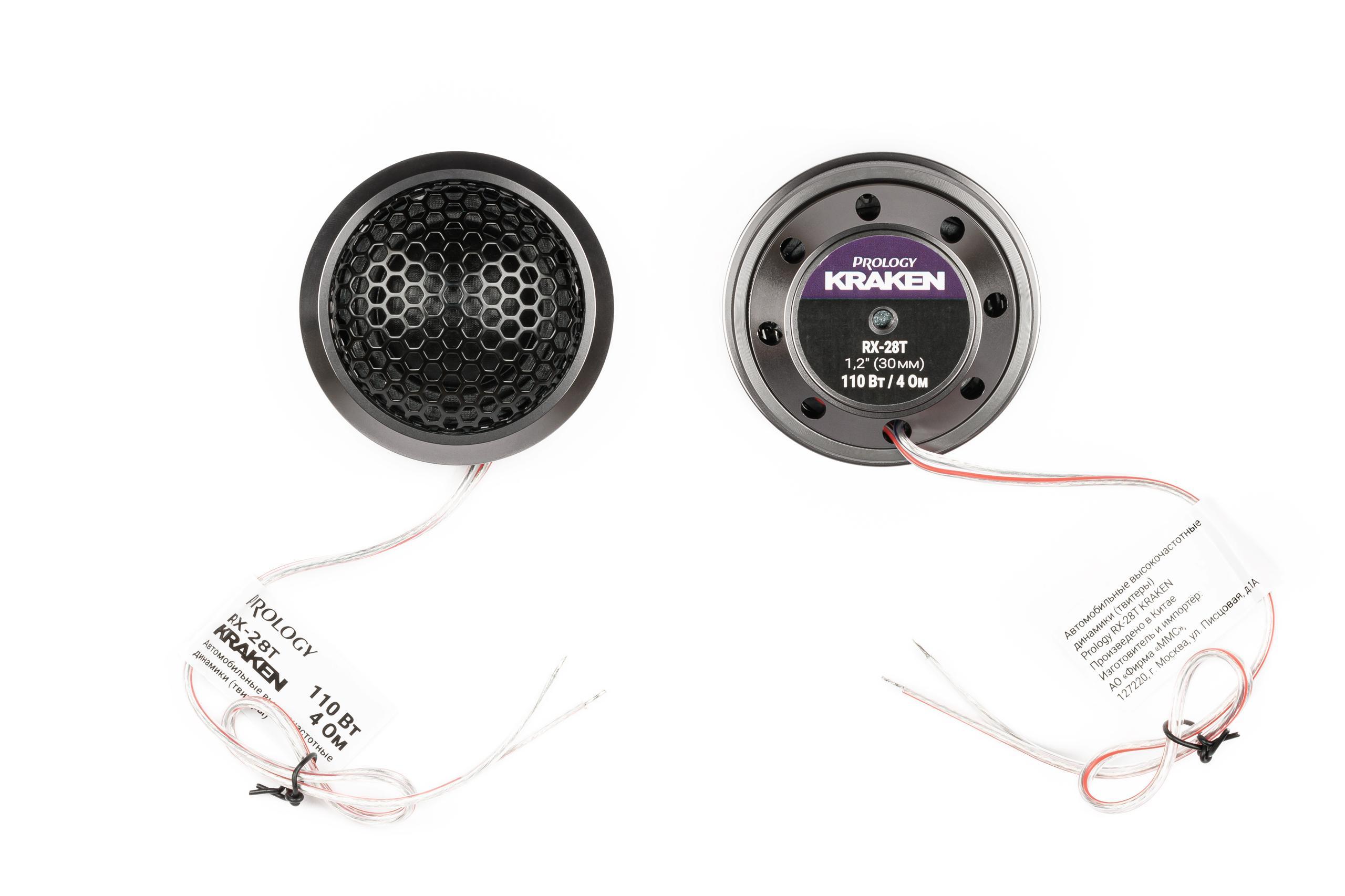 PROLOGY RX-28T KRAKEN — высокочастотные динамики 30 мм (1.2"), мощность 55 Вт (RMS), 4 Ом, 91 дБ.