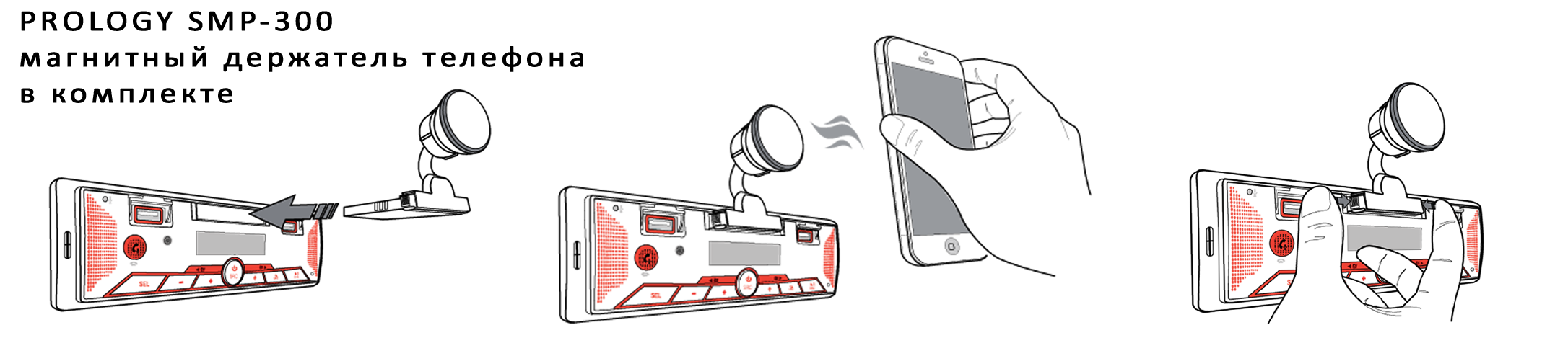 Модель Prology SMP-300 появилась недавно и стоит недорого – 3990 рублей. Устанавливается в стандартное место 1DIN, и с ним не нужно искать отдельное место для смартфона – держатель предусмотрен прямо на передней панели.